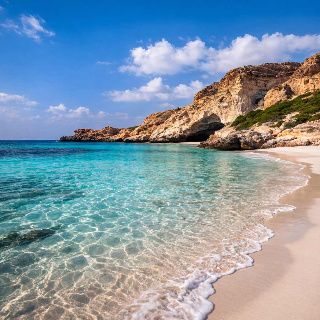 The island stretches about 132 kilometers in length and approximately 50 kilometers in width. Within this compact space, the terrain shifts dramatically, from coastal plains and white-sand beaches to limestone plateaus, deep valleys known as wadis, cave systems, and the Haggeher Mountains rising at its center. This geographical diversity allows visitors to experience beaches, highlands, and dramatic desert landscapes all within a single journey.